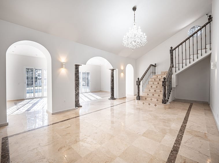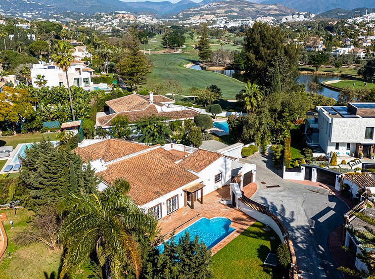 This home is a 4 bedroom 4 bathroom villa set on a large 1000sqm plot in one of the most prestigious areas of Nueva Andalucía. The home overlooks Las Brisas Golf and enjoys open views to La Concha. It offers a private pool, landscaped garden and a three car garage. Located in a quiet cul de sac, this luxury villa is within walking distance to restaurants, shops and top amenities. This is a perfect family home in a prime Marbella golf location.