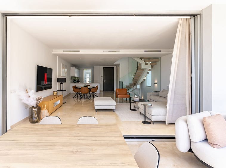 The property is distributed over 4 floors and comprises on the main floor a bright and spacious living room, open plan modern kitchen with top of the line appliances, a separate utility room and a southwest facing terrace overlooking a park with olive trees, which gives tranquility and privacy.