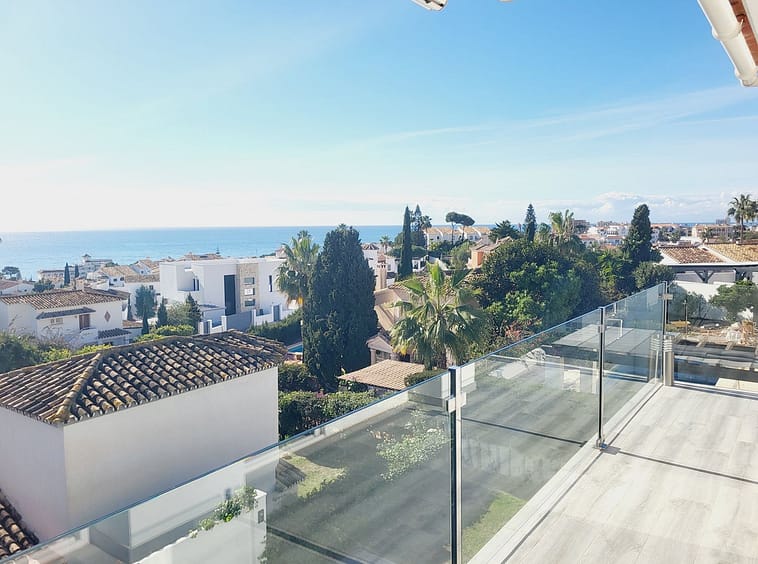 AT BEDROOM LEVEL THERE ARE THREE LIGHT AND VERY SPACIOUS DOUBLE BEDROOMS, EACH WITH THEIR OWN EN-SUITE BATHROOM, FITTED WARDROBES AND ONE WITH AN OFFICE/SEATING AREA THAT COULD ALSO BE A CHILD'S NURSERY. ALL BEDROOMS HAVE THE BENEFIT OF SEA VIEWS AND EACH ONE LEADS OUT TO ANOTHER WRAP-AROUND TERRACE WITH AMPLE SEATING AREAS AND WHICH ALSO PROVIDES STAIR ACCESS TO THE POOL, GARDENS, EXTENSIVE TERRACES AND THE GUEST STUDIO ON THE LOWER FLOOR.