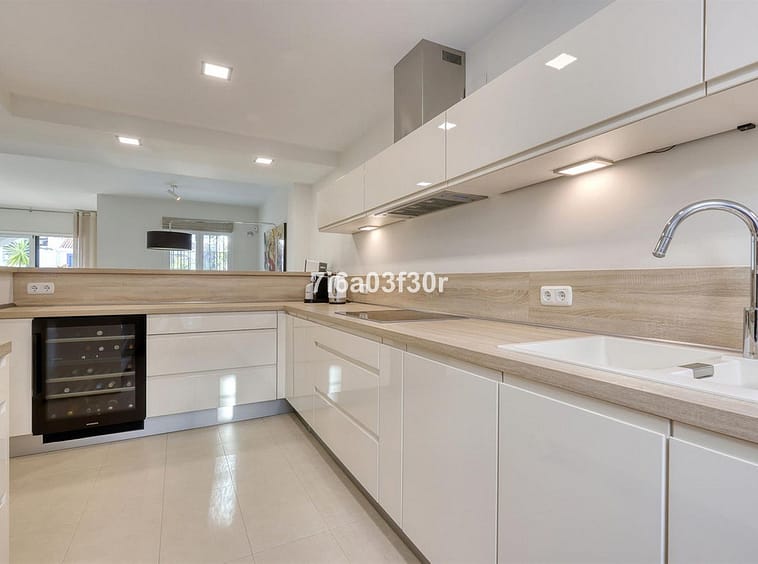 Beachside: A rare, beautiful and fully upgraded 4-bedroom westfacing townhouse in the sought-after Residencial Las Arenas, San Pedro de Alcántara – just footsteps from the beach & beach promenade and just minutes to the charming town centre.