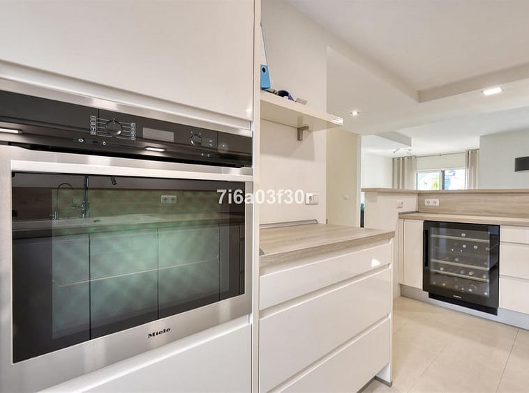 Entering the frontdoor you to the right meet the tasteful, open-plan designer kitchen boasts a full range of features and top-of-the-range appliances and fixtures, with everything you need at your fingertips. Including also the winecooler….