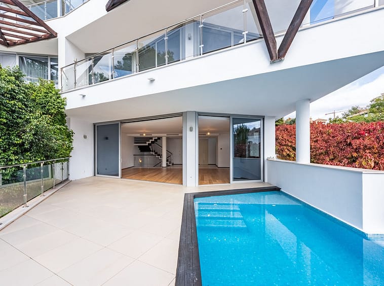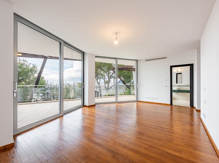 The home sits on a total plot of 845 m², with 385 m² of beautifully designed interior space, complemented by an impressive 89 m² of terraces and a 42 m² private plot. A private swimming pool and breathtaking sea and mountain views create a serene Mediterranean atmosphere, enjoyed from both the private garden and the meticulously maintained communal areas.