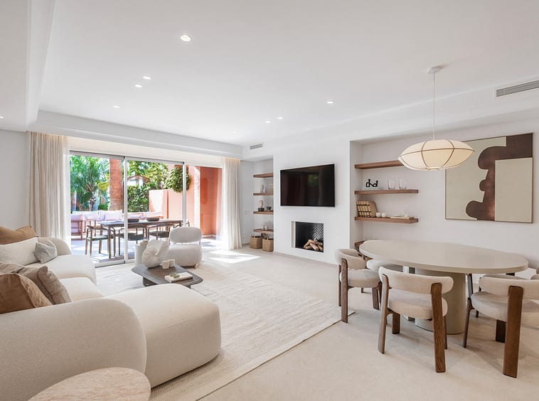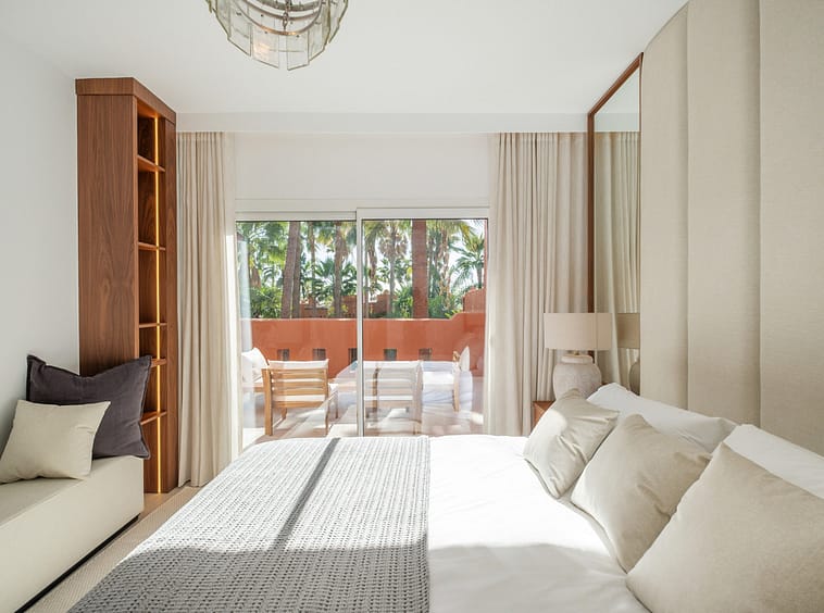 Altos de Puente Romano 3 is a beautifully reimagined 4-bedroom residence, fully renovated in 2025 with bespoke carpentry, a custom-designed kitchen with Miele appliances, and elegant contemporary finishes throughout. Located in one of the most exclusive gated communities on the Golden Mile, the property offers an exceptional standard of modern Mediterranean living. Every room is equipped with Airzone climate control and the bathrooms feature underfloor heating, ensuring year-round comfort.