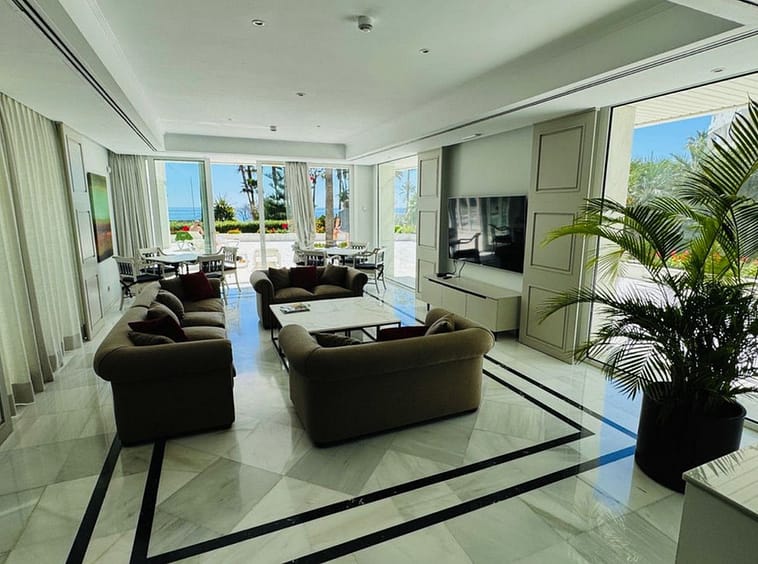 An exceptional opportunity to own a spacious 5-bedroom, 6-bathroom apartment located directly on the beachfront with uninterrupted south-facing sea views. Situated within the exclusive gated community of Los Granados in Puerto Banús, this residence offers 24-hour security, lush landscaped gardens, and direct beach access.