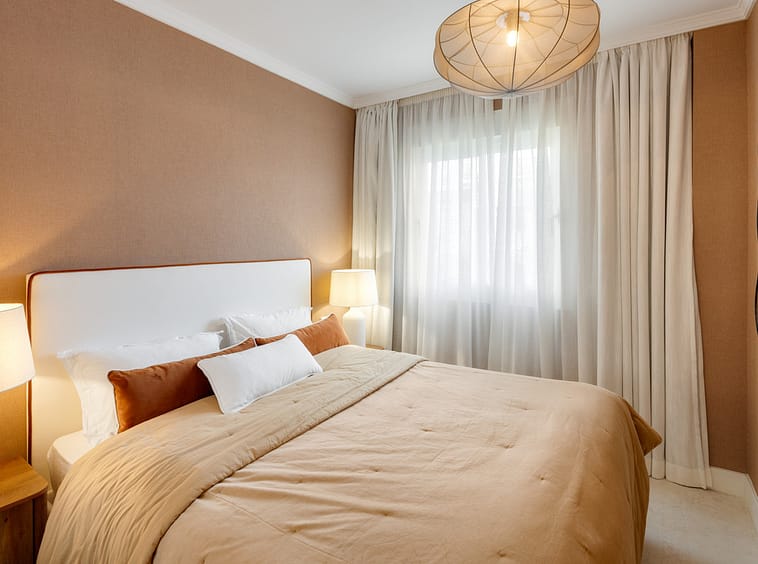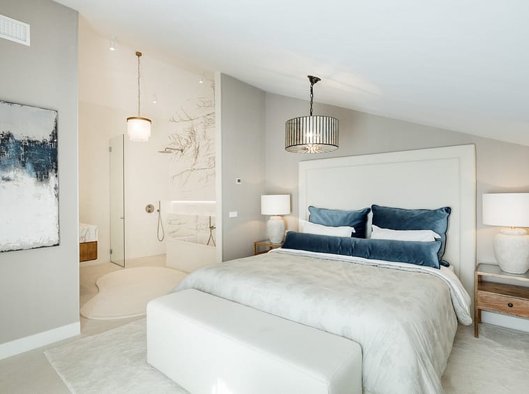 The terraces maximise outdoor living, featuring a kitchenette with BBQ and a private jacuzzi for cooling off while enjoying the views. The upper-level terrace provides an intimate lounge area, ideal for entertaining or relaxing. Inside, the bedrooms are designed for comfort and style, with the master suite offering a walk-in closet and a luxurious en-suite bathroom.