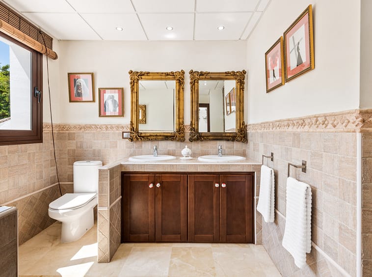 The villa is built over 2 floors with a spacious driveway and double garage. There are in total 5 bedrooms & 6 bathrooms and the property boasts a lovely mature garden and pool area.