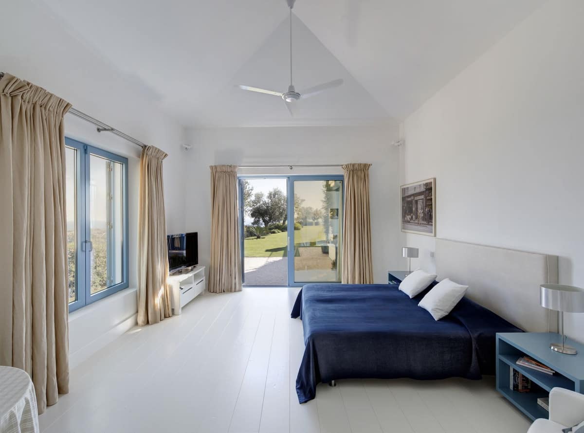 The main entrance with large vestibule, guest bathroom and lift, leads to the large open plan living and dining area with designer kitchen by Siematic including Gaggenau appliances. There is also service access to the kitchen from the car port at the street entrance to the villa. In the living area, silent electric pocket windows disappear neatly into the stone cladded walls to take us to the generous floating terrace where we can embrace the magnificent view of the Mediterranean and the Golf Course. This level of the villa is also home to the luxurious principal bedroom with private terrace, en suite bathroom and private dressing room.