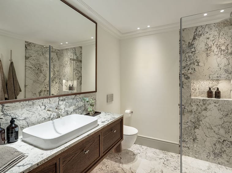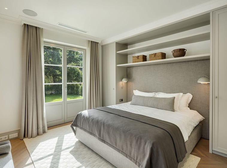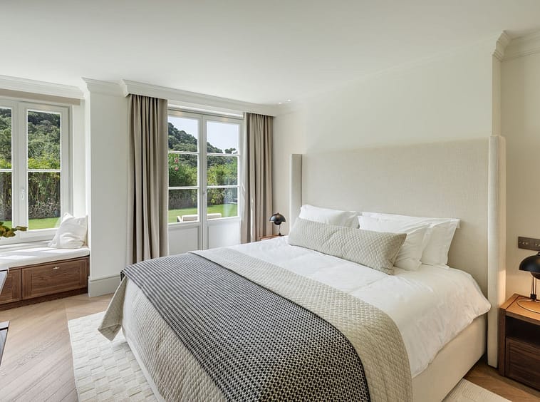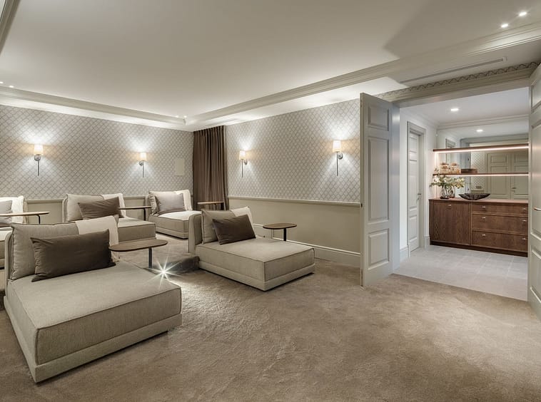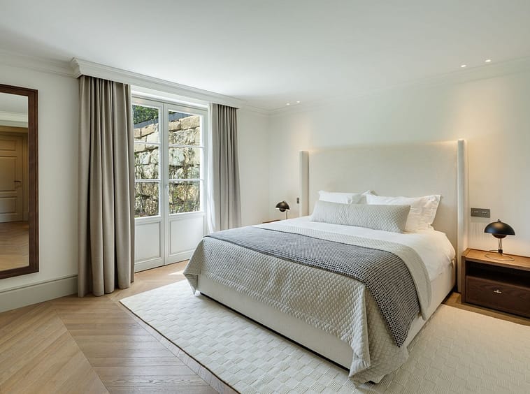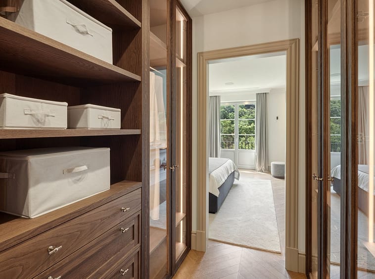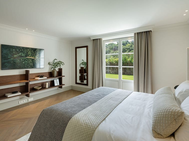 The lower level is dedicated to leisure and functionality, offering a private cinema, gym, massage room, wine cellar, service quarters, and two additional en-suite bedrooms with kitchenette. Technical areas are discreetly separated, enhancing efficiency and ease of maintenance. Integrated Zennio smart home technology provides intuitive control throughout.
