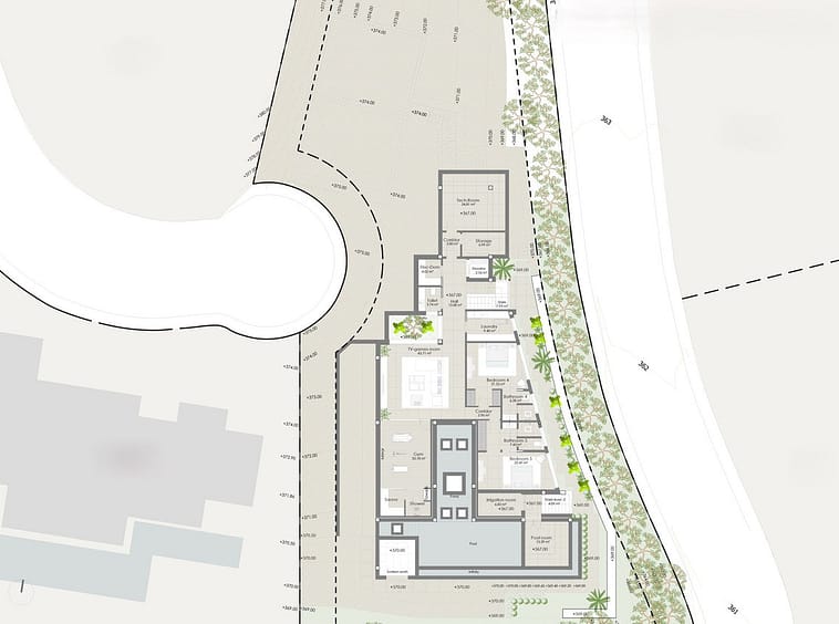 The project is designed with five spacious bedrooms and seven opulent bathrooms across three meticulously planned levels. Quality is paramount, with high-grade materials used throughout the property. This exquisite villa offers an array of high-end amenities, including a full gym, private cinema, game room, wine cellar, elevator, and sauna. Every detail has been thought of to provide you with the ultimate luxury living experience.