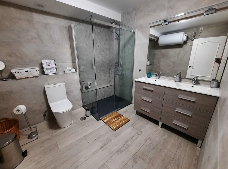 Upstairs, you’ll find two elegant double bedrooms, both with en-suite bathrooms. The master suite enjoys its own private terrace and direct access to a stunning rooftop solarium; perfect for sunbathing, barbecues, or simply soaking in the panoramic surroundings.