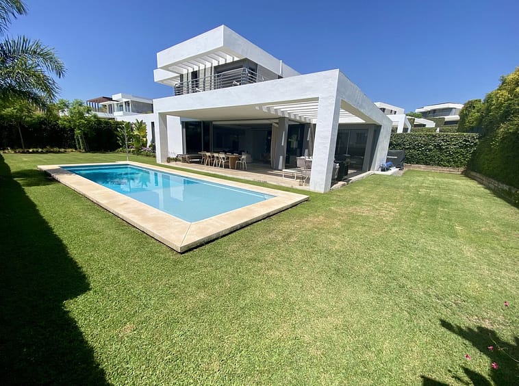 Love at first sight! Impeccable luxury detached villa in a top location. Situated between Marbella and Estepona, with the beaches of Costalita only 5mn away. The best hotel on the coast, Villa Padierna with its restaurants and 2000m2 spa, as well as some of the most renowned golf courses, are within a 5km radius. As you enter, your senses awaken to the mature and landscaped garden and entrance, brightness per the southwest orientation, and massive rooms with a practical layout. Of recent construction, the condition is perfect and no details have been left untouched. The main floor consists of an extensive living room with a large american kitchen, and an implanted living room. Direct access to a big outside space, with terrace, barbecue, chill-out areas, and the swimming pool all day in the sun. On this level, you will find a bedroom, full bathrooms, and an office space. Upstairs, more sleeping area: two double bedrooms, bathrooms, and plenty of walk-in closets. From the terrace, enjoy sea views and wonderful sunsets. Downstairs, the owners have organised a games room, gym, two further bedrooms and wash room. The garage has space for two cars. The residential area is lovely, newly built, and with easy access. A must see!