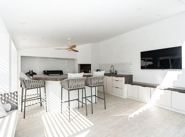 There is also a large outdoor dining space, comfortable seating area, and even an outdoor television area, perfect for watching sports or hosting gatherings with friends and family.
