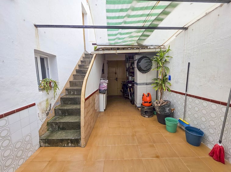 The townhouse currently offers 181 m² built across two levels, complemented by a 22 m² terrace and a versatile layout comprising five bedrooms and one bathroom. Access to the first floor is presently via an external staircase, a feature that opens up interesting possibilities for redesign. The layout makes the property particularly suitable for conversion into two independent units, or for reconfiguration as a spacious single-family residence. There is also potential to add an additional level, subject to the relevant planning permissions.