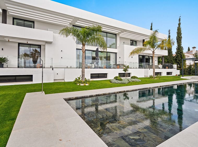 A refined detached villa set on a generous plot, offering sea and golf views, spacious interiors, landscaped gardens, private pool, wellness areas, and advanced energy systems.
