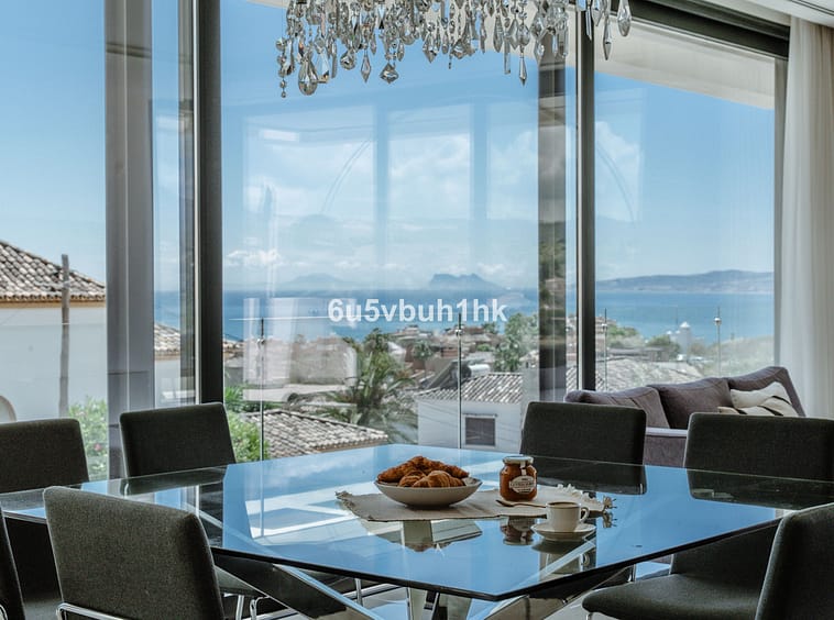 Enjoy panoramic views of the Mediterranean Sea, the African coastline, and Gibraltar from every corner of this spectacular villa. With five bedrooms and four full bathrooms, plus a guest toilet, the home offers generous and elegant living space. Two of the bedrooms are en-suite and include private dressing rooms, creating an oasis of comfort and privacy. All rooms open onto the terrace, filling the interiors with natural light and offering breathtaking views of the garden, sea, and mountains. The bedrooms are equipped with electric blinds and bathrooms with underfloor heating.
