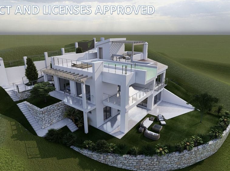 Project and licenses approved so construction can start as soon as the client wants. Off-plan luxury villa, 1st line golf in La Cala Golf consisting of 2 floors and a huge solarium with terrace and pool. This property will have 5 bedrooms, a studio/bedroom, 3 bathrooms, guest toilet, a fully fitted kitchen with all appliances, and terraces.