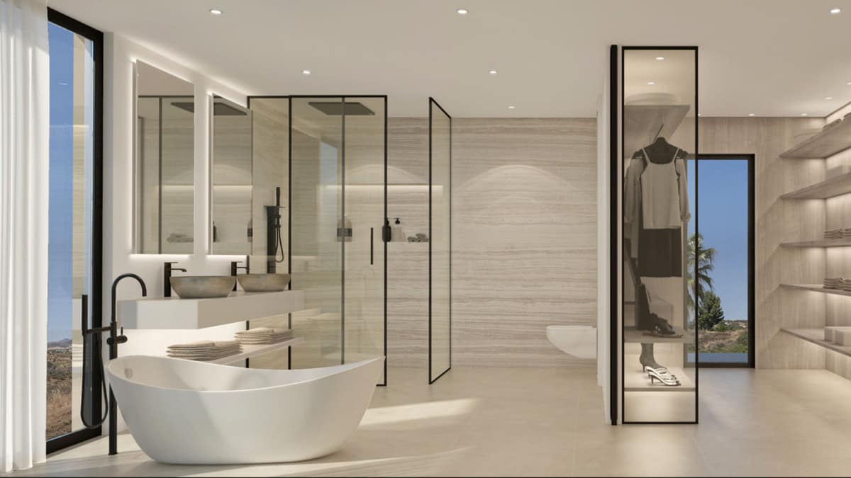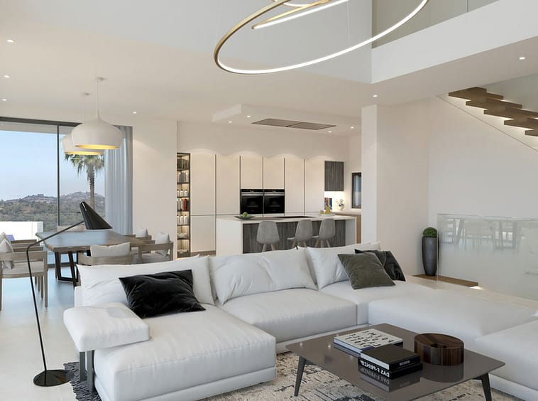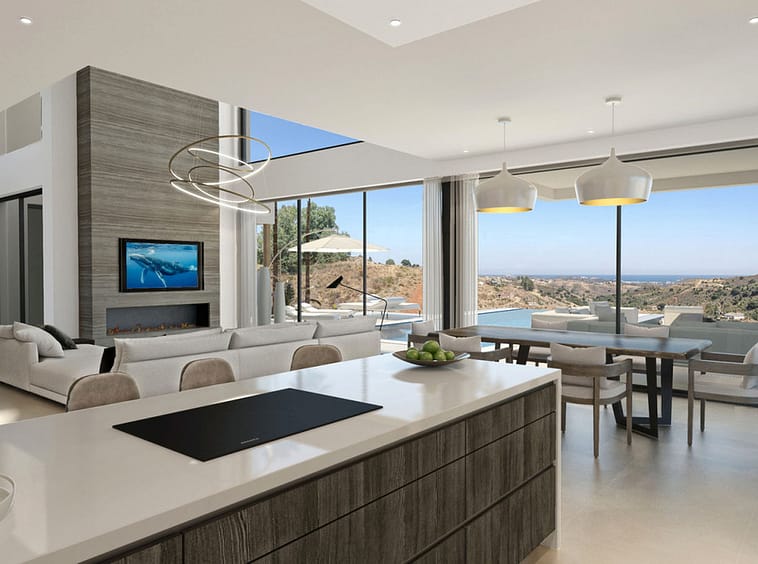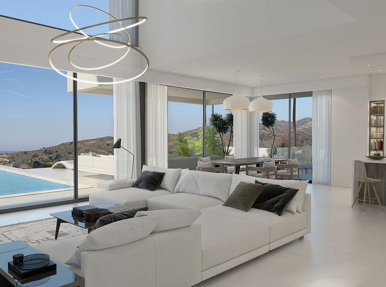 This high-quality villa is standing on a large plot of 1474m² situated on the top of the hill. Having the best possible location in this area, the villa is offering the complete privacy and unobstructed gorgeous views over the green hills of La Cala de Mijas and the Mediterranean Sea.