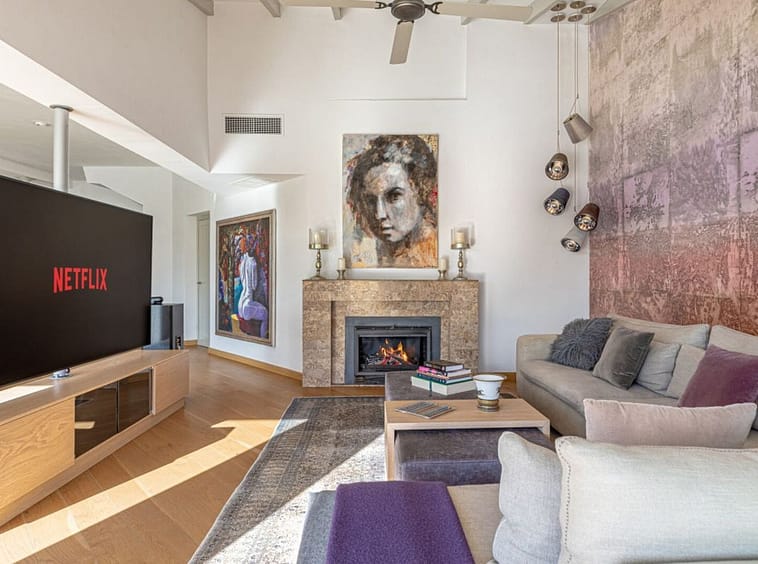 The main level welcomes you with a bright living room featuring a fireplace, a separate dining area, and direct access to covered and open terraces and pool overlooking the garden. A fully fitted Bulthaup kitchen provides ample storage and workspace, ideal for everyday living and entertaining. The villa offers five well-proportioned bedrooms, including a spacious master suite, and several bathrooms finished in a modern style.