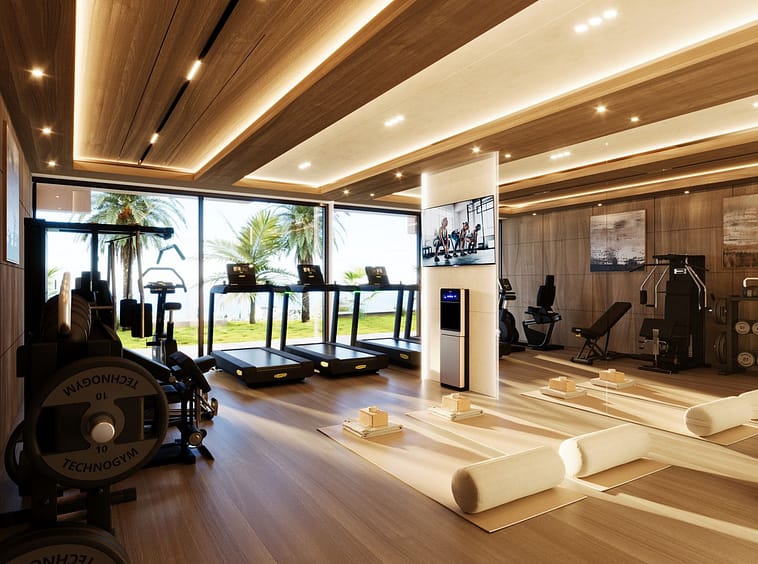 •Private wellness areas with gym, spa, yoga space, and office