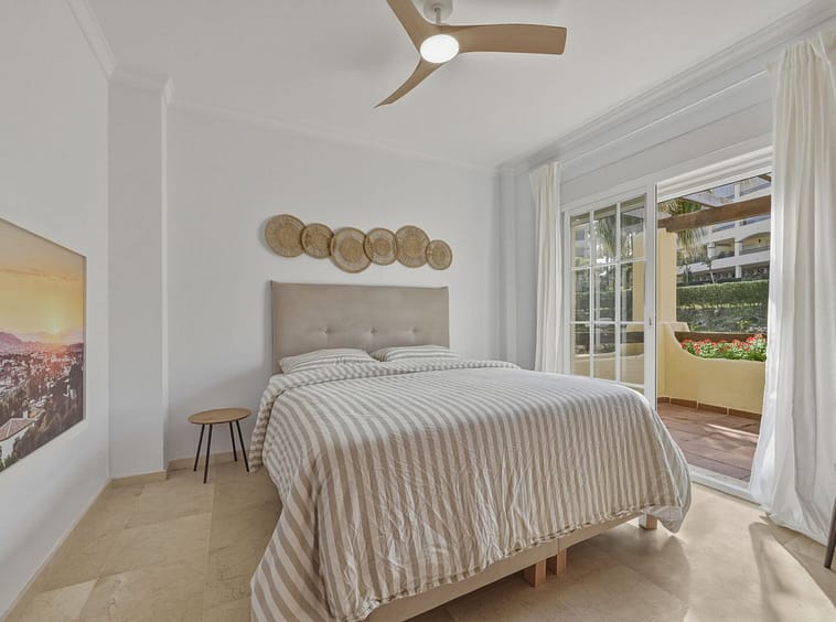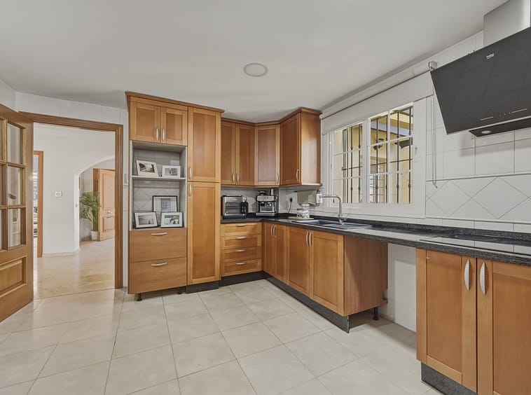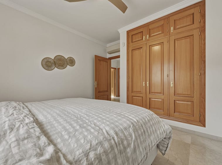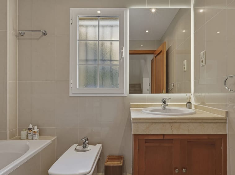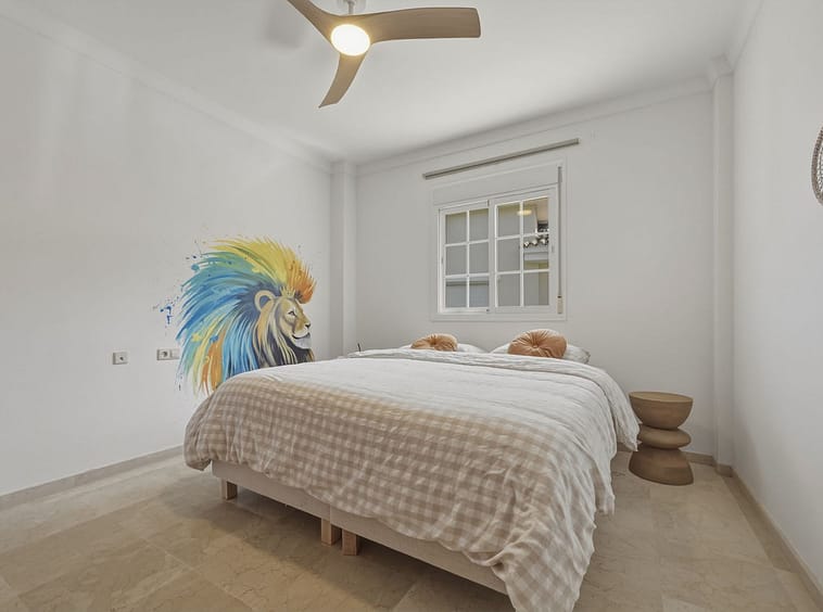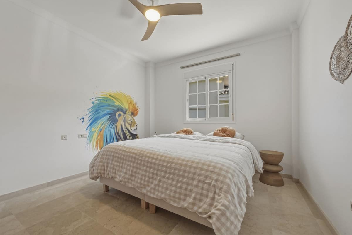 The upper floor comprises four spacious bedrooms and two bathrooms, including a generously sized master bedroom positioned on the corner of the house. The master benefits from two separate windows and open views towards the Mijas mountains, providing excellent natural light. One additional bedroom enjoys access to a private balcony. All bedrooms are well sized and suitable for comfortable long-term use.