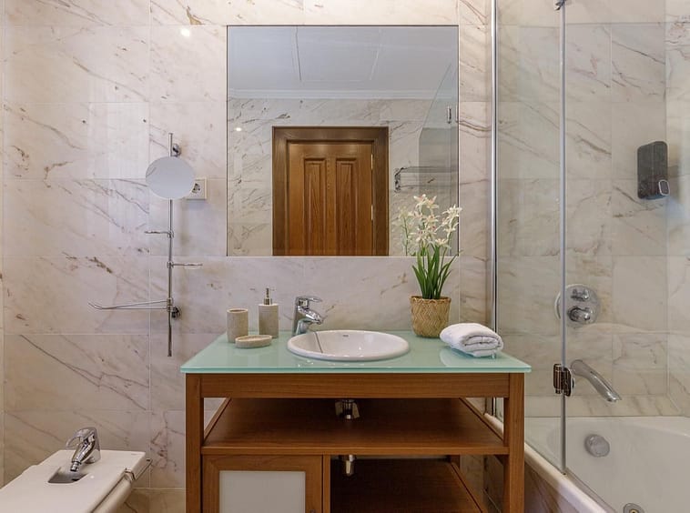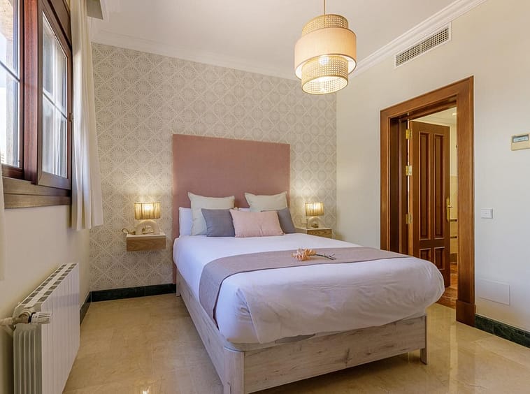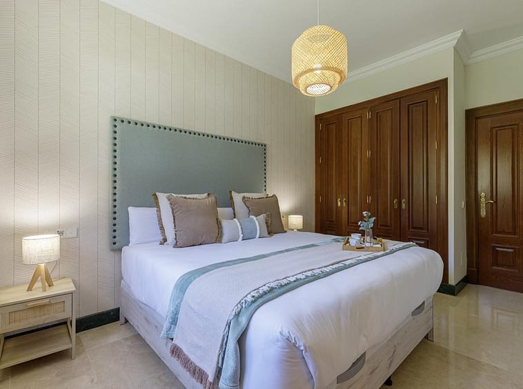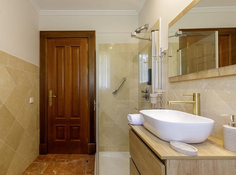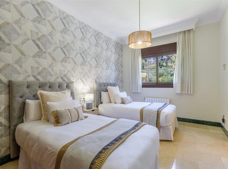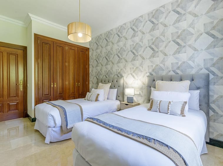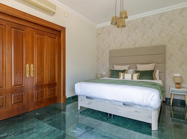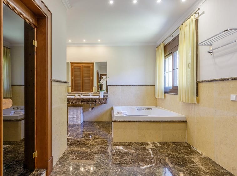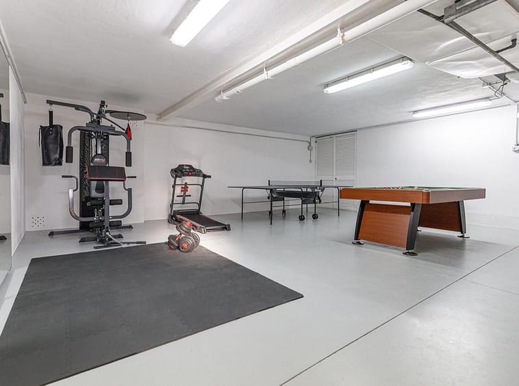 This large property has 5 bedrooms, 5 bathrooms, large living room – dining room, kitchen, games room and gym, private pool, garage for 2 cars and private garden.
