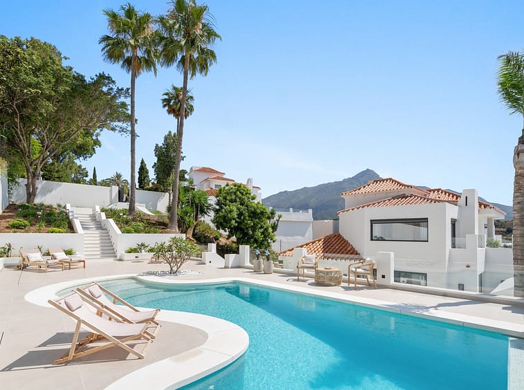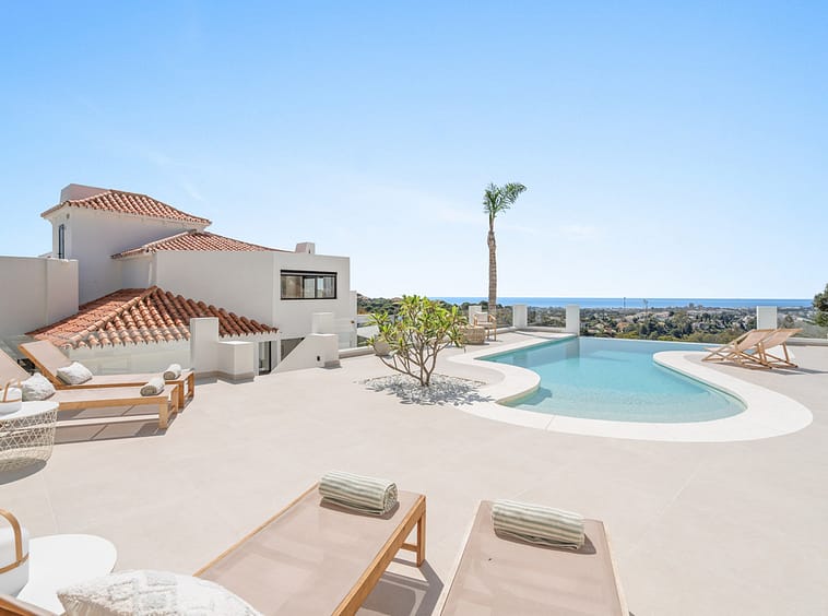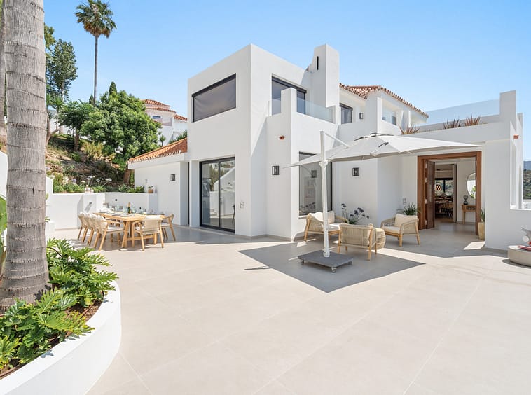 Located in one of Marbella’s most sought-after residential areas, this five-bedroom, five-bathroom villa offers panoramic, frontal views of the Mediterranean Sea, La Concha mountain, and Puerto Banús. Positioned on a 1,950 m² plot, the property includes 444 m² of interior space and more than 300 m² of terraces, designed to highlight volume, light, and privacy.