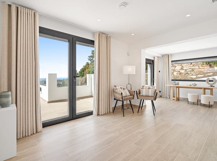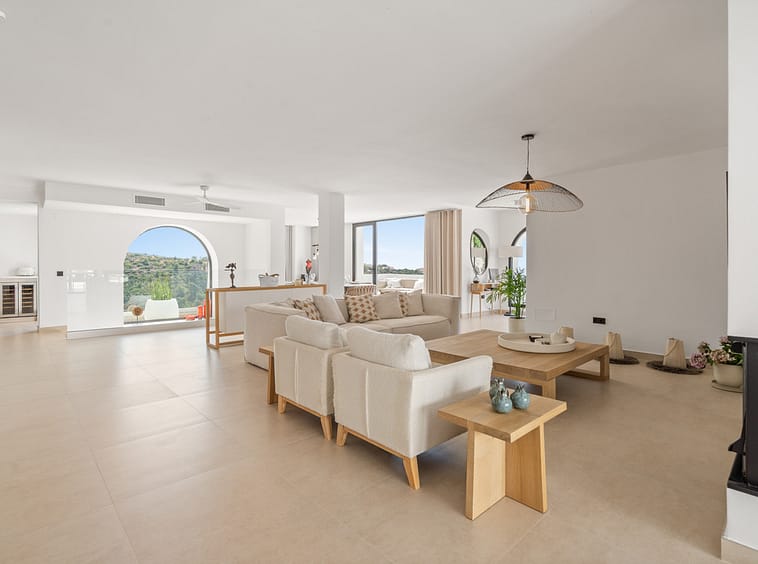 Just minutes from international schools, renowned golf clubs, and the marina of Puerto Banús, this residence combines architectural simplicity with frontal views, natural light, and a private setting.