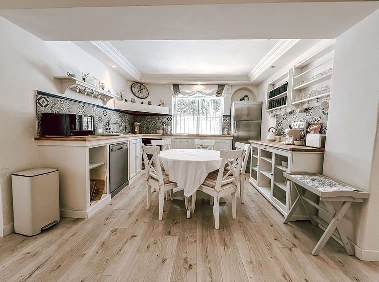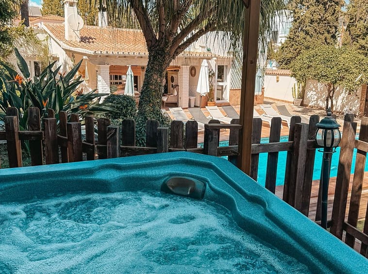The exterior is one of its great attractions: a beautiful garden with numerous fruit trees, a large private swimming pool, and a jacuzzi for 6 people, perfect for enjoying the Mediterranean climate.