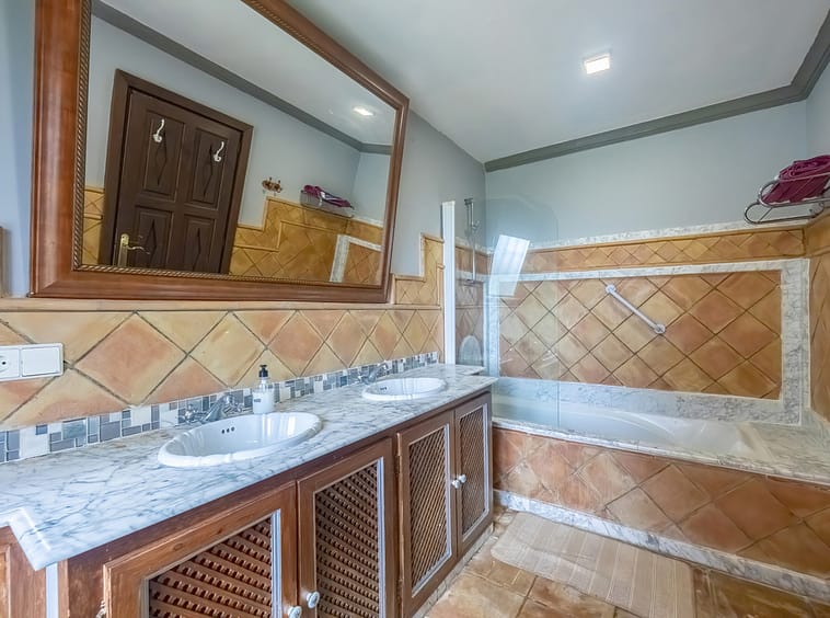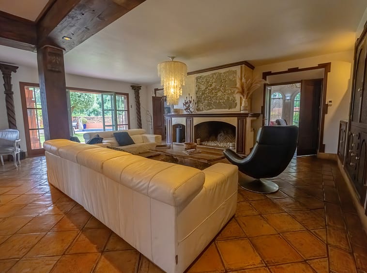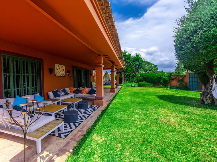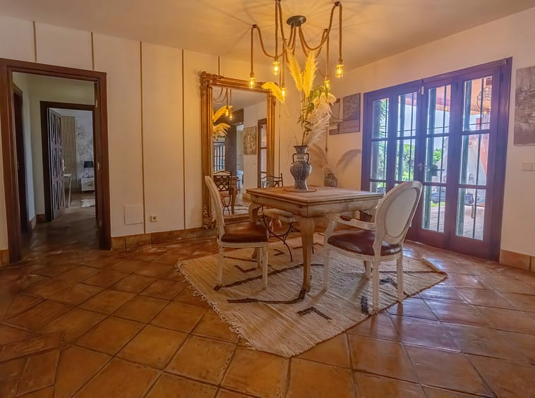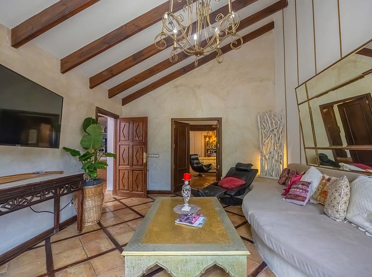 This Andalusian-style villa is located in a quiet and green area of Nueva Andalucía, next to Puerto Banús. Built on a 1,204 m² plot with a total living space of 506 m², the property offers 5 spacious bedrooms, 6 bathrooms, and 2 independent staff rooms, making it suitable for both family living and accommodating guests or household staff.
