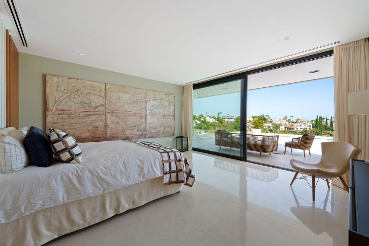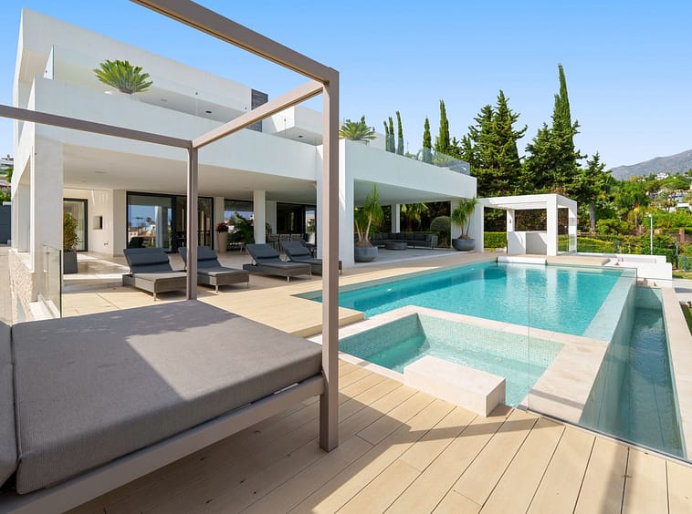 Outdoors, lush landscaping frames the infinity-edge pool, complete with a sunken lounge, outdoor kitchen, and multiple chill-out zones. With a private garage, state-of-the-art home automation, and optional furniture package, this villa is a turnkey luxury residence in one of Marbella's most prestigious and sought-after locations.