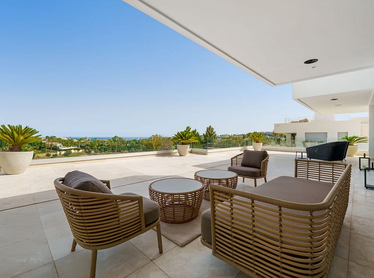 A striking contemporary villa in the heart of Nueva Andalucía, enjoying a privileged frontline golf position. With clean architectural lines, expansive terraces, and floor-to-ceiling windows, this home is designed to maximize natural light and uninterrupted views of the fairways, offering a seamless blend of indoor and outdoor living.