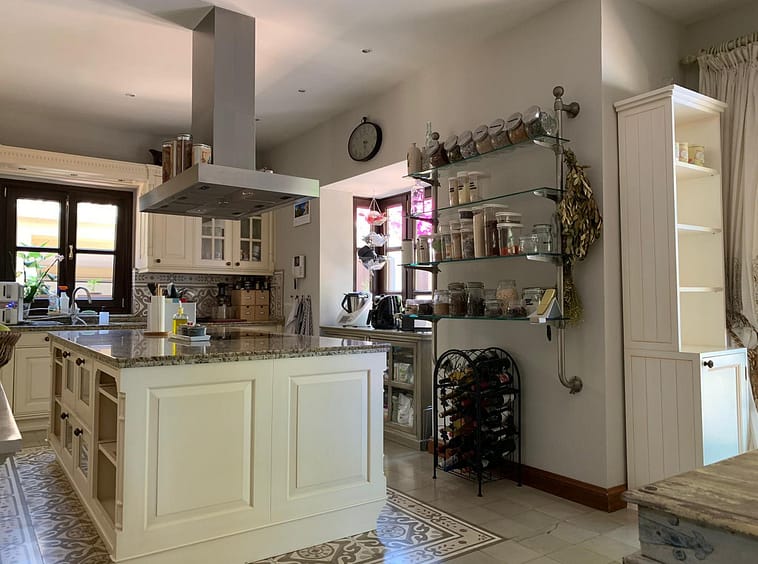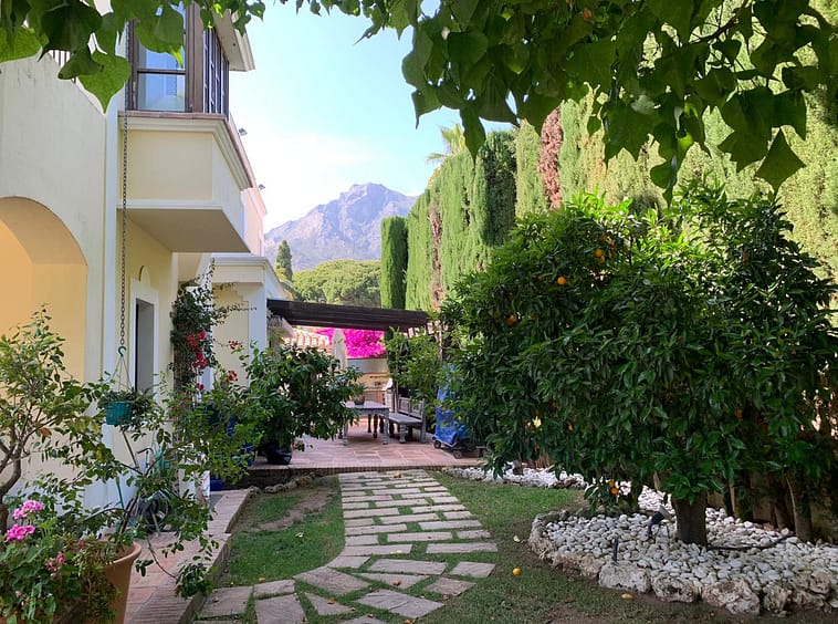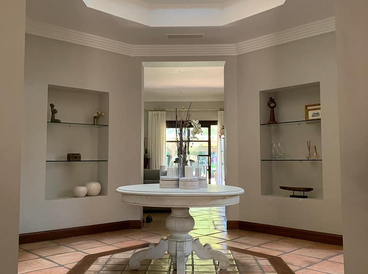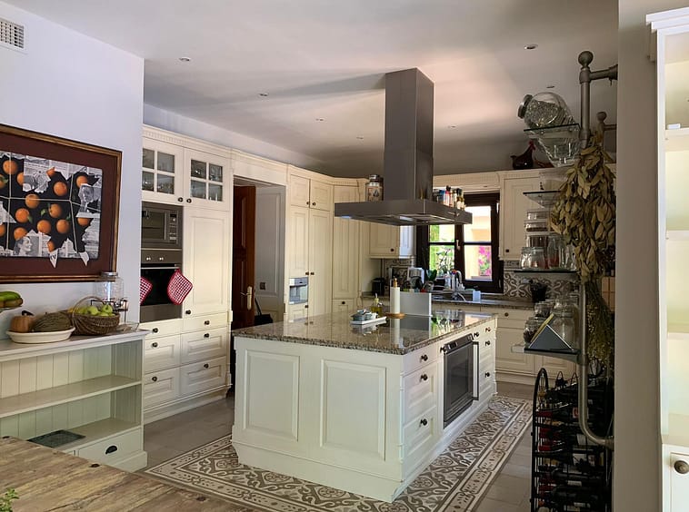 This marvellous five bedroom family villa sits in the most prestigious resident hills of Marbella, in a quiet and private area, in Cascada de Camojan. Its design and decoration, in a mixture of Andalusian and English style, is a statement of unpretentious elegance. Marbella town and the nearest beach is at 5 min. drive. Puerto Banus is at a 10 min. drive. The beautiful entrance hall with its marvellous high oak covered ceiling is a pleasure to the senses. The living room that has been ingeniously designed to provide a feeling of cosy spaciousness with its fireplace and through the use of warm terracotas, oak wood, soft furnishings and colours. This room leads to another nice area of the villa and to the dining room and kitchen and of course, to the gorgeous outdoor covered terrace with outside kitchen the garden and pool beyond. There are 5 bedrooms and 4 have en-suite bathrooms. The huge master bedroom leads out directly to a nice terrace with sea view. The whole house has under-floor heating. The kitchen is fully equipped.