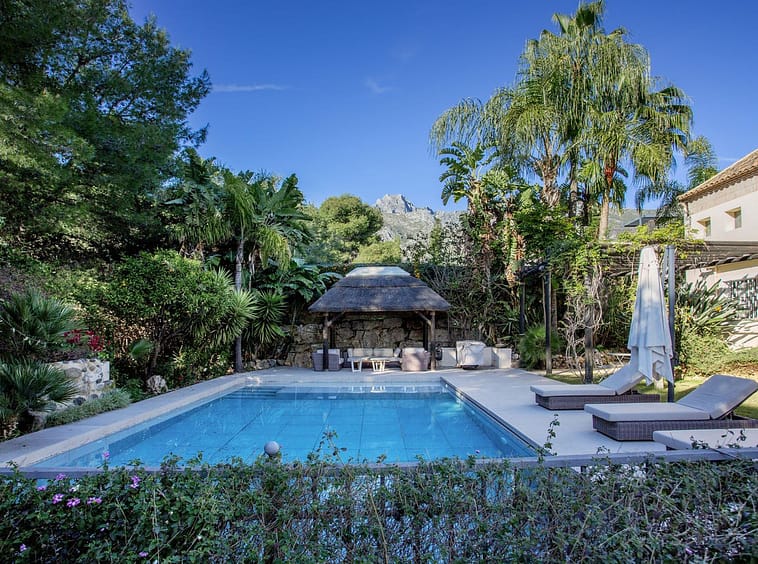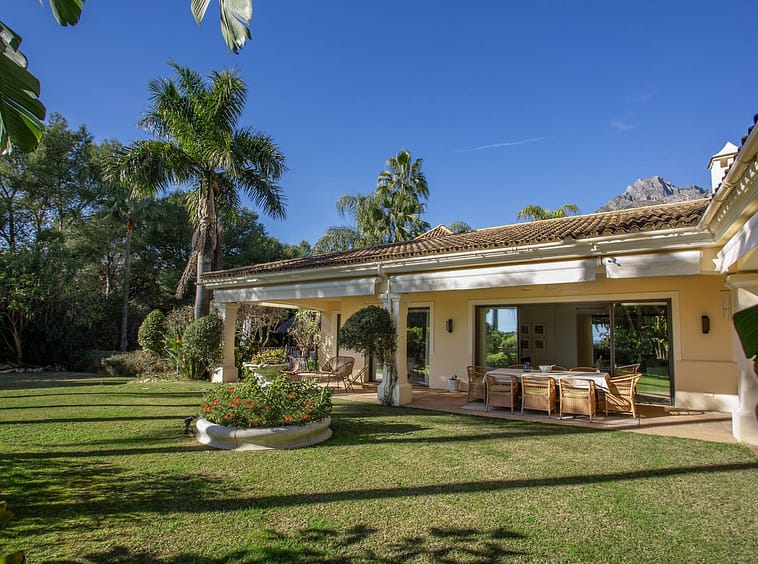 Located in the prestigious neighbourhood of Sierra Blanca just minutes from the Marbella Golden Mile, this renovated detached villa enjoys a totally private plot with sea and La Concha mountain views.