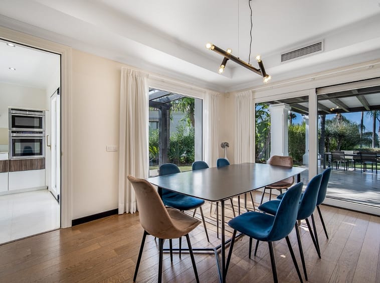 This elegant five-bedroom, south-facing luxury villa is situated in the prestigious Village Las Lomas de Magna Marbella complex on Marbella's Golden Mile. The complex offers 24-hour security service, two large community pools, and lush tropical gardens of exceptional beauty. The villa enjoys a prime location, close to all amenities, including supermarkets, shops, restaurants, schools, and golf courses, and is only a five-minute drive from the sea.