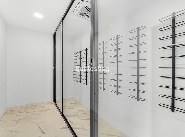 Leisure and wellness are well catered for with a dedicated gym, games room, wine cellar, and a private SPA. Outdoor living is enhanced by both covered and uncovered terraces totalling 125m², a barbecue area, and views over the garden and pool. The villa is also equipped with fitted wardrobes and a guest toilet for practicality.