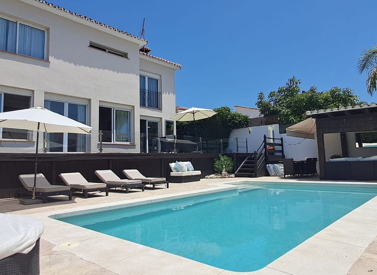 Stunning 6-bedroom, 6-bathroom detached villa located in a secure, gated community just a 10-minute walk from the beach and moments from the heart of Marbella.