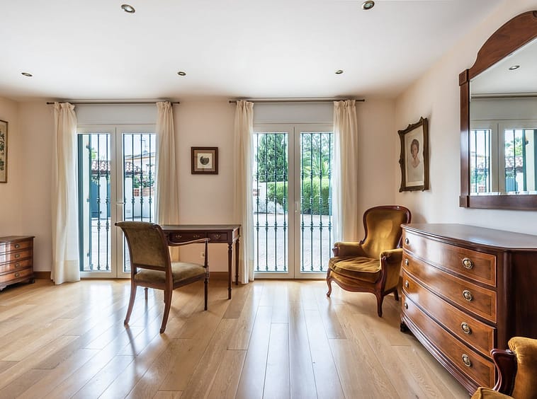 House located in a very central urbanization, fully fenced and stately outdoor parking. House with a wonderful entrance hall, this house is divided into three floors. The entrance is made up of a family kitchen, courtesy toilet, living room and wonderful dining room surrounded by stained glass windows giving access to the terrace from which there is access to the large garden and a view of the pool. Fireplace in the living room, hot / cold air conditioning, underfloor heating throughout the house except on the lower floor. On the upper floor are the three bedrooms, each more spacious, the main one with its en-suite bathroom and dressing room and another with a wonderful high beamed ceiling. The house has a terrace with spectacular views and a large area to chill out on the top floor. The lower floor is divided into two areas as well as being made up of a laundry room, and on the right there are 3-4 parking spaces and on the left a totally independent apartment with its own entrance, divided into three bedrooms and a bathroom. The house has a cistern. It is worth the visit.