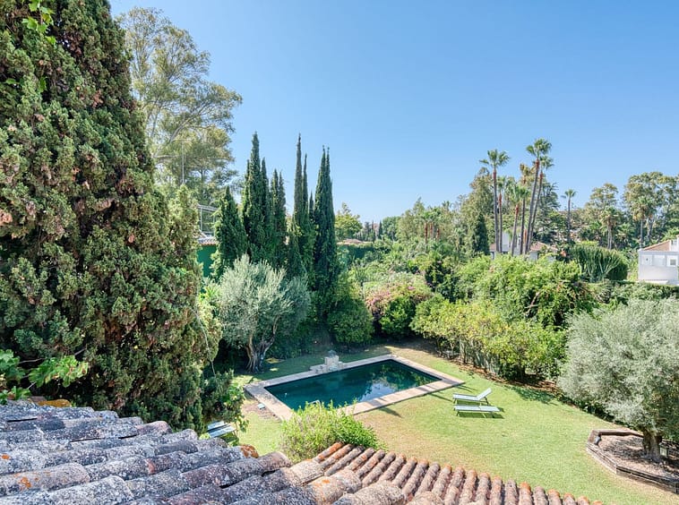 Welcome to an exceptional six-bedroom, six-bathroom family villa set in the heart of Marbella’s prestigious Golf Valley. Blending timeless Andalusian design with modern luxury, this home has been thoughtfully designed for both relaxed family living and vibrant entertaining. Inside, bright and spacious living areas flow seamlessly to the outdoors, where a large covered terrace creates the perfect setting for alfresco dining. A bespoke BBQ and bar area makes entertaining effortless, while the beautifully landscaped and completely flat gardens provide a sense of peace and complete privacy. Mature trees frame the oasis-like pool and sunbathing area, reached by elegant oak sleeper steps – a true haven for relaxation.