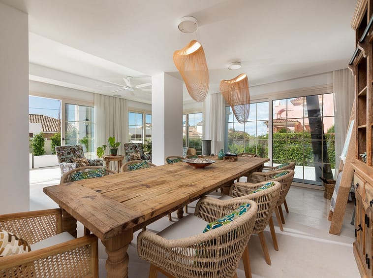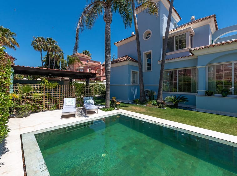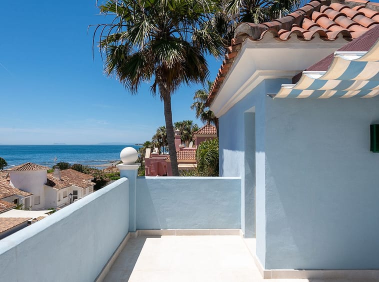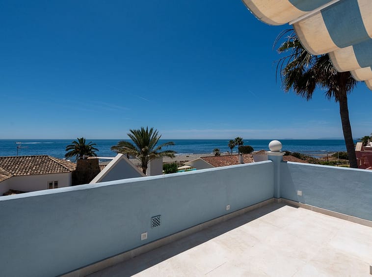 Beautifully finished House step to the Sandy Beach of Marbella, Finished with the highest quality building materials located 50 meters from the beach, walking to Puerto Banús and San Pedro / Guadalmina Baja and very close to several top Golf Courses of Marbella and in a very private and Quiet Urbanization.