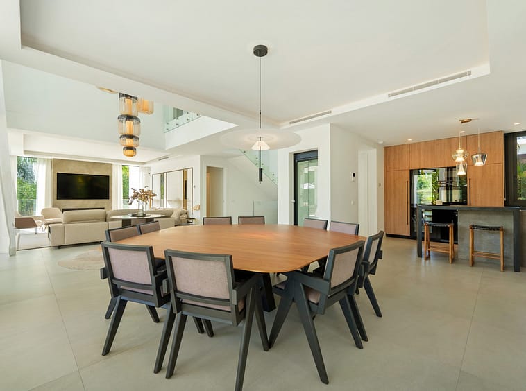 The villa’s expansive living areas are designed for both style and comfort, from the elegant open-plan lounge and designer kitchen to the formal dining room and chic entertainment lounge. Every bedroom is a private retreat, complete with en-suite bathrooms, while the master suite boasts a spa-inspired bathroom with freestanding tub and breathtaking views of La Concha mountain. Outdoors, multiple terraces, a rooftop lounge with Jacuzzi, and a spectacular infinity pool provide the perfect backdrop for relaxation and entertaining.