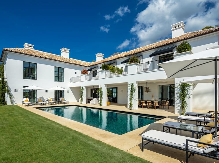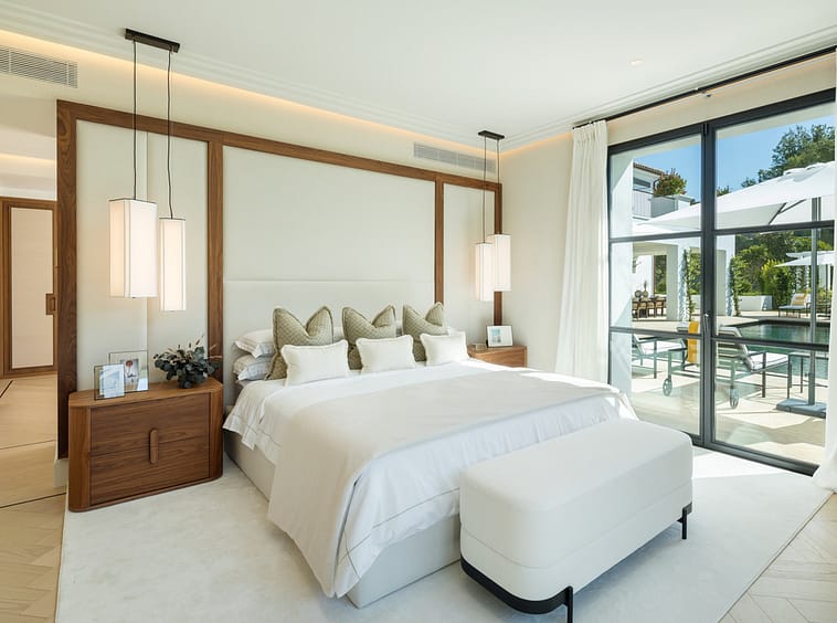 Created by the acclaimed architect behind Finca Cortesín, the villa’s nude-toned exterior radiates serenity and peace, offering a calming atmosphere for its residents. The gardens are a true oasis—perfect for hosting gatherings and making the most of Marbella’s 320 days of sunshine. Colorful floral walls frame the property, adding vibrancy and seamlessly blending the natural surroundings with the estate.