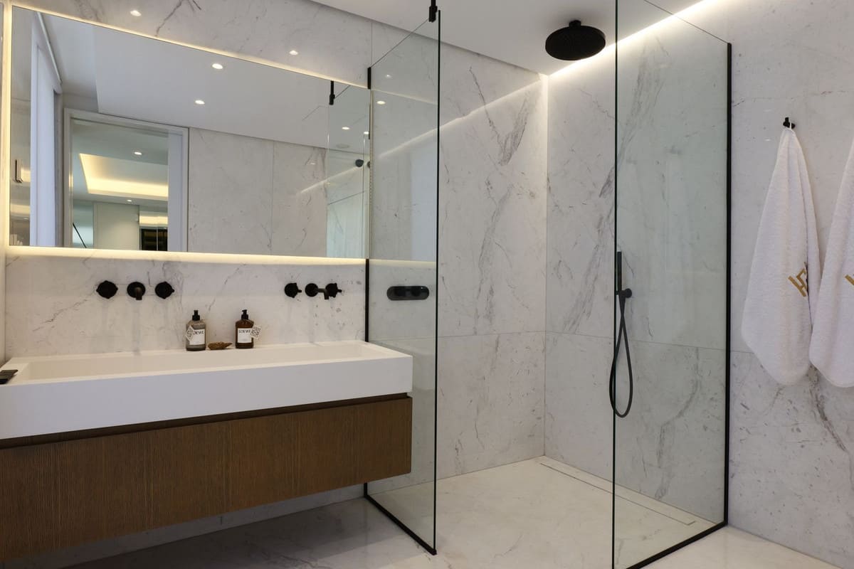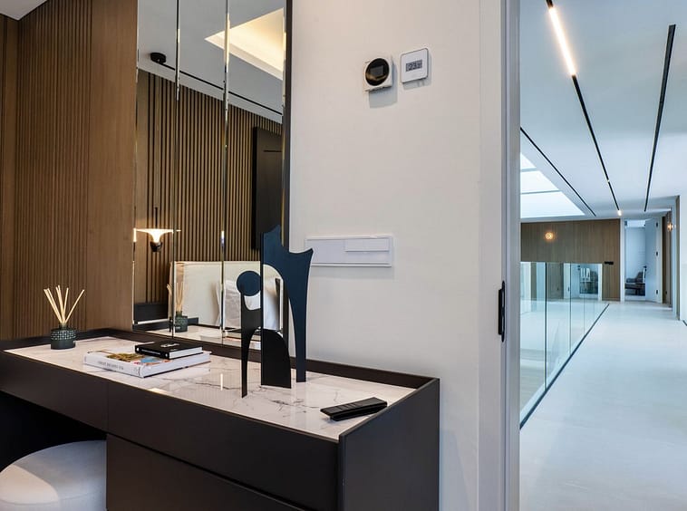 Boasting 7 spacious bedrooms and 8 beautifully designed bathrooms, the villa provides an ideal layout for large families, guests, or those seeking an opulent residence with ample privacy. Every space is bathed in natural light and furnished to the highest standards, ensuring a warm, inviting, and stylish atmosphere throughout.