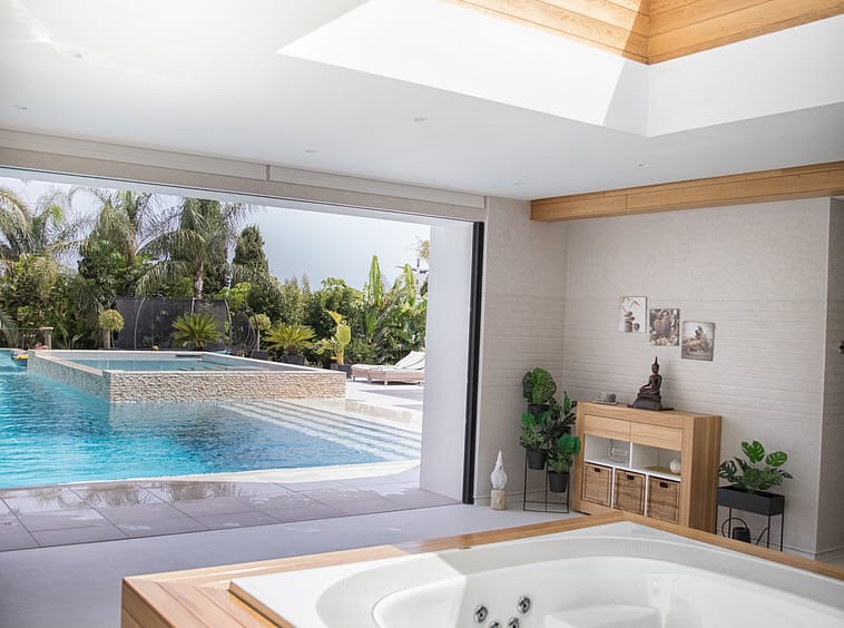 Complementing the main residence is a 500 m² guest house designed with the same level of luxury, featuring two bedrooms with dressing rooms and en-suite bathrooms, a spacious living area with a modern kitchen, a private terrace, and its own pool. This addition ensures privacy for guests or can serve as staff accommodation, making it a versatile extension of the property.
