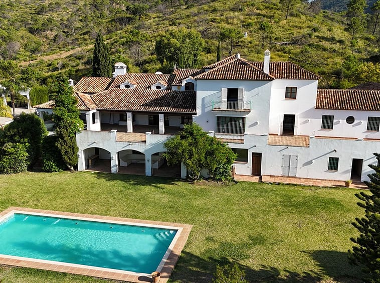 Unique Finca – Cortijo with 550.000 m2 of land and river, just 8 minutes drive from the A-7, between Estepona and San Pedro. This property is in a rustic protected area, granting tranquility, privacy and being totally surrounded by forest and mountains, yet only like 15 minutes drive from the beach,"Laguna Village", etc.