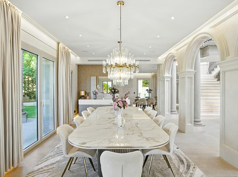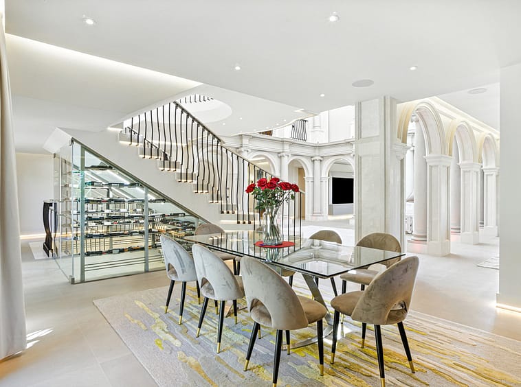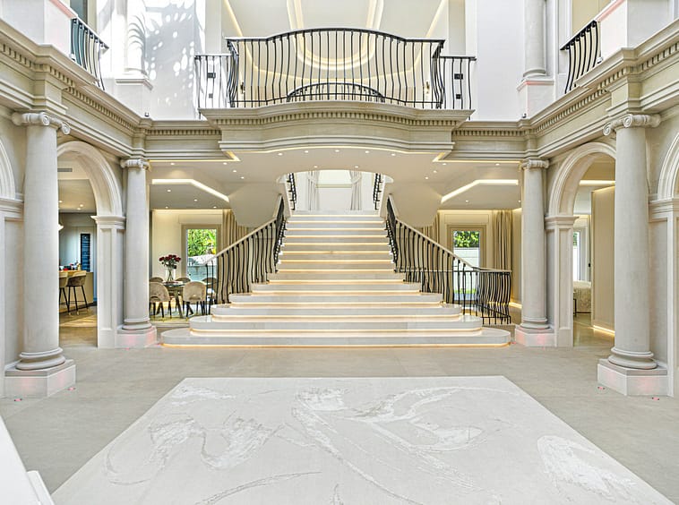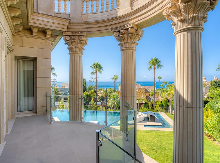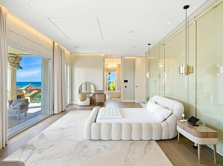 An architecturally unique, south-facing property located in the exclusive gated community of Sierra Blanca on Marbella’s prestigious Golden Mile. This brand-new mansion offers exceptional design, panoramic sea and mountain views, 24-hour security, and is just minutes from world-class beaches, golf courses, international schools, fine dining, and the glamour of Puerto Banús. Designed to impress, the villa blends bold contemporary lines with timeless European craftsmanship. Luxurious finishes include premium natural stone flooring, imported French limestone columns, custom Rimadesio wardrobes, wood doors, and German-engineered fittings.