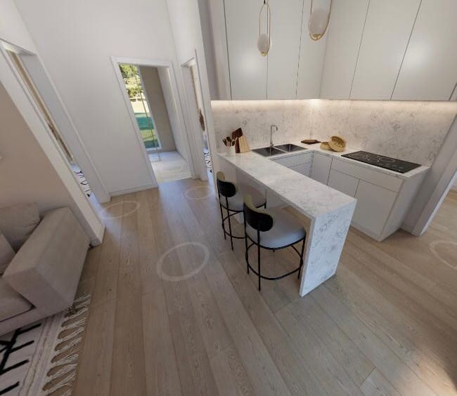 If you are looking for a hassle-free investment with high returns, we offer a smart co-housing model with no concerns about tourist rental licenses. This individual villa is divided into luxury apartments featuring fully equipped bathrooms and kitchens, underfloor heating in the bathrooms, and air conditioning in all rooms. The property offers shared outdoor areas, a pool with ecological filtration, and a garden, as well as interior amenities including an elevator.