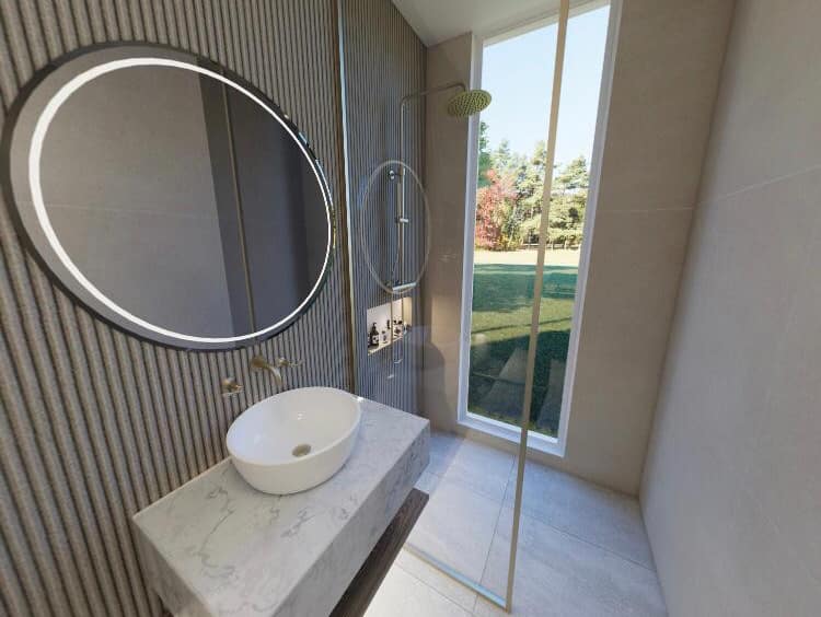 The semi-basement, which benefits from natural light, includes a sauna, jacuzzi, gym, and laundry facilities—all powered by renewable energy. These sustainably designed villas are built with eco-friendly materials to ensure environmental responsibility.