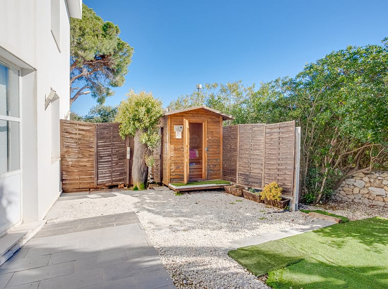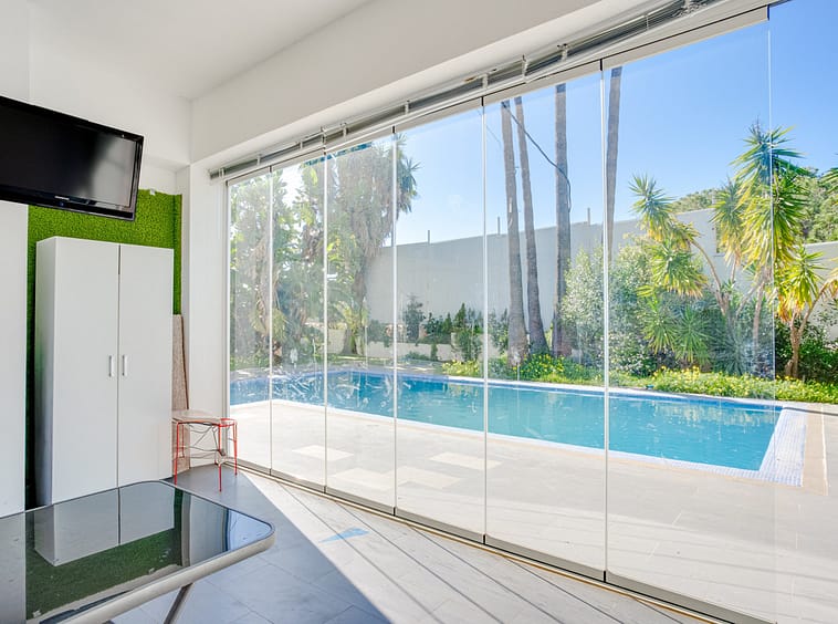 Unique eight bedroom south facing villa, in a tranquil area of Elviria, Marbella. Located close to the beach, schools and local amenities, this fantastic property is also a successful operating Bed & Breakfast. The property consists of the main house, two apartments with independent access and an additional two bedrooms with access from the garden. The house is equipped with everything you would need for year-round living or holiday rentals including a heated swimming pool, golf putting green, outdoor sauna, and BBQ area. The terrace and solarium boast stunning sea views. Other features include hot and cold air conditioning, private parking space, storage area and solar panels that supply the electricity to run the whole property, as well as a back-up generator.